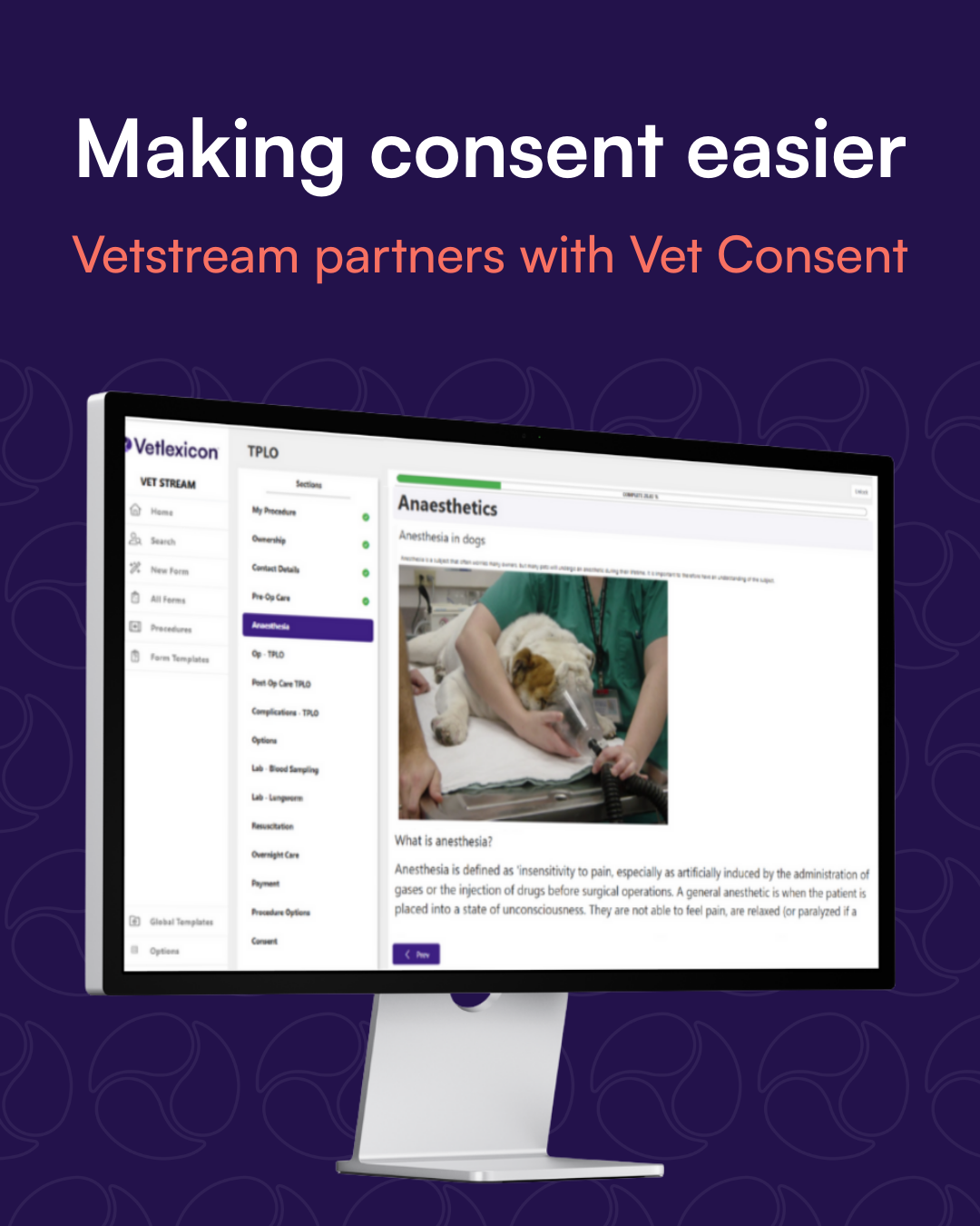 Vetstream’s CEO Dr G Mark Johnston said “We are delighted with the partnership with Vet Consent, as we share the common goal of supporting vets on the front line of clinical care. Informed consent is such a key issue in practice. This partnership allows clinical teams to use our client factsheets in the context of the all-important consent process in the most effective way, helping to resolve these consent challenges. By taking the pressure off clinical teams, and making sure everything is documented, this should lead to improved client understanding and fewer complaints to the RCVS and VDS.”